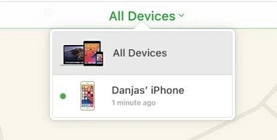 步驟2:單擊上層欄中的“所有設備”。選擇已忘記密碼的手機。