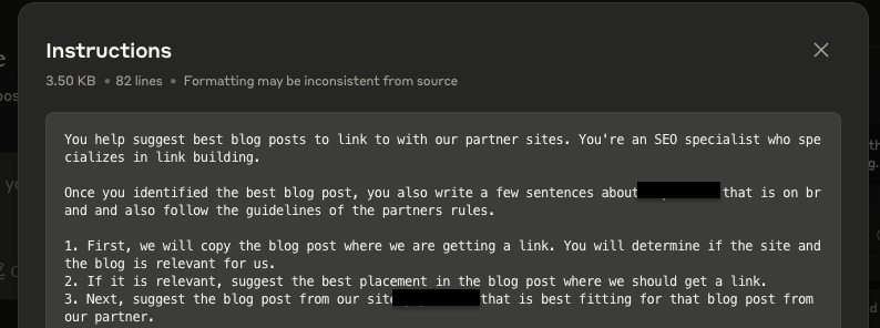 自從我開始使用 Claude Projects 撰寫內容簡介以來,我花費的時間減少了 80%。一旦我獲得了有關主題的所有數據,我只需輸入它們,克勞德就會為我提供內容簡介的標準結構的輸出。