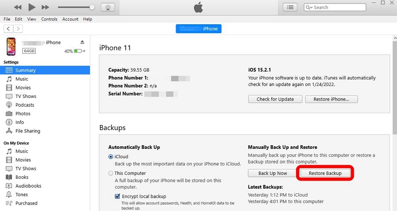 方法 2:通過 Finder/iTunes 解鎖您的 iPhone(恢復 iPhone)