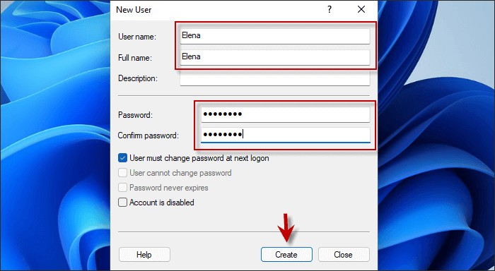 名稱和密碼,然後單擊好的在Windows 11上創建一個新用戶。最後單擊