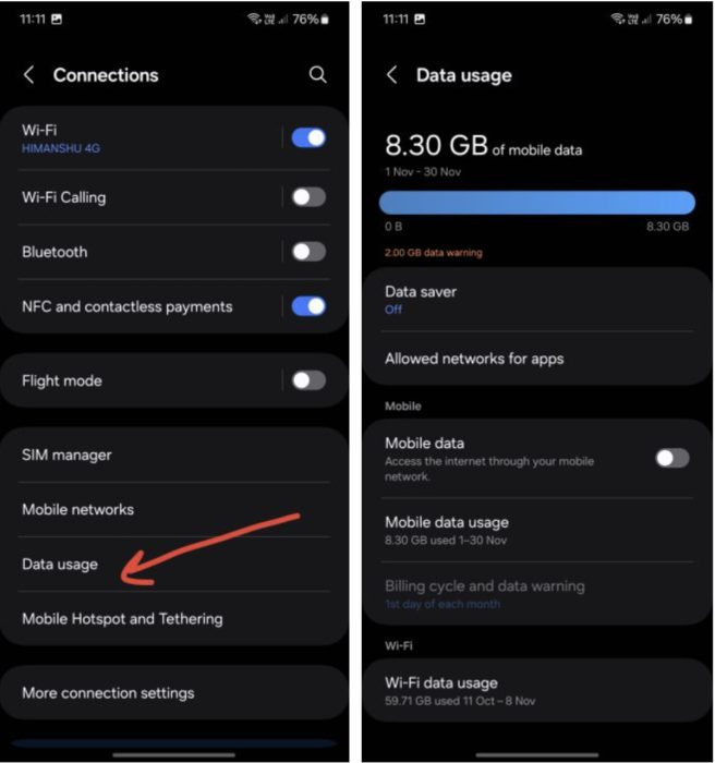 因此,在設置中檢查手機的數據使用情況至關重要,以確定是否是不熟悉的應用程序導致了流量峰值。為此: