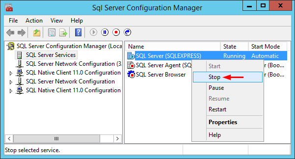 Stop-Service -Name 'MSSQL$SQLEXPRESS'