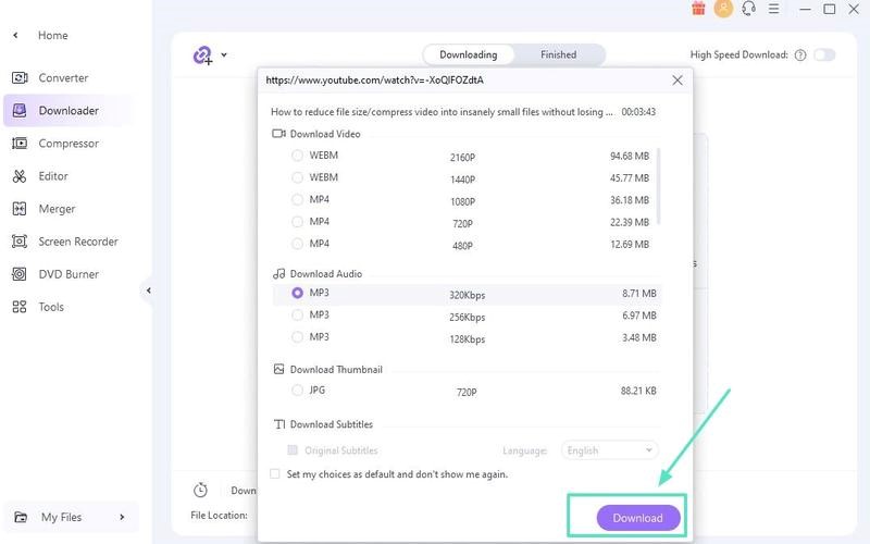 使用在線轉換器或類似軟件萬能轉換器,您可以從 YouTube 視頻中提取音頻作為 MP3。複製視頻網址。將其粘貼到您選擇的轉換器中。選擇 MP3 作為輸出格式並啟動轉換。完成後,將轉換後的 MP3 文件下載到您的設備。