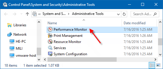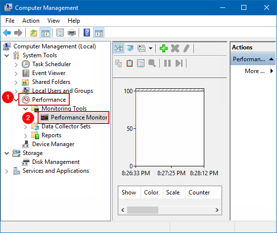 單擊開始菜單、類型性能監視器在搜索框中,以及