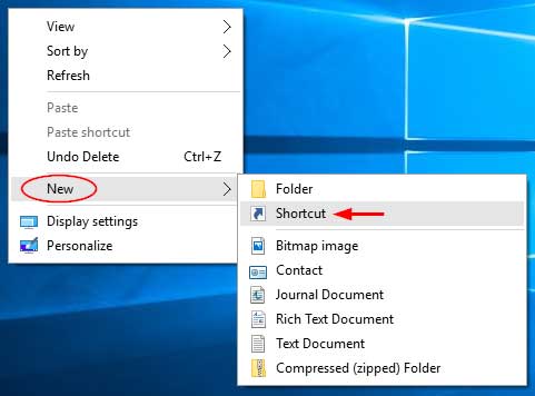 - 右鍵單擊桌面任意空白區域,選擇新的->捷徑。