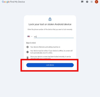 - 鎖定之前,手機上必須已激活“查找我的手機”。
