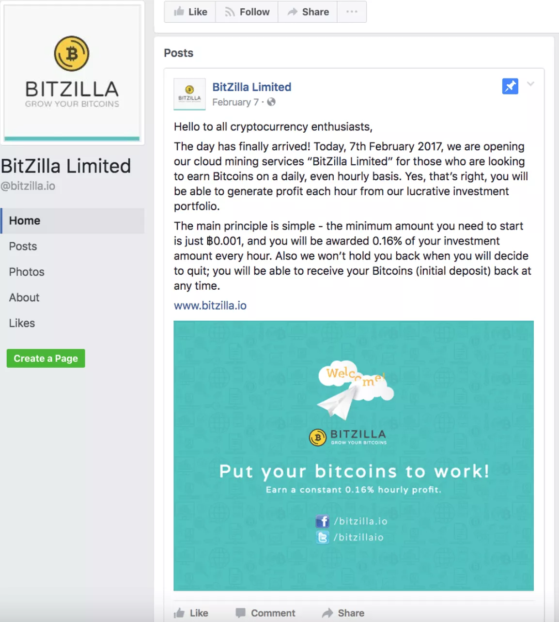 在下面的示例中,一個虛假的雲挖礦服務向加密貨幣愛好者提供 BTC 存款服務,並承諾每小時利潤的 0.16%。事實上,這是一種利用龐氏騙局欺騙用戶的非法業務。