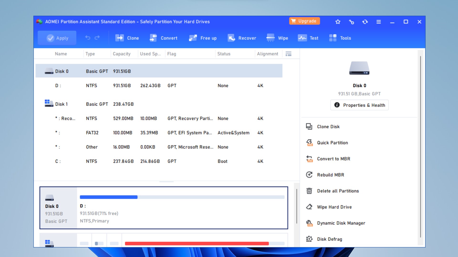 筆記:傲梅分區助手擁有用於管理西數硬盤和優化磁盤性能的工具。但是,執行磁盤管理操作時務必小心謹慎。任何不正確的設置或操作都可能導致數據丟失或 WD 硬盤損壞。我們懇請您在對磁盤分區或結構進行任何更改之前備份重要數據。