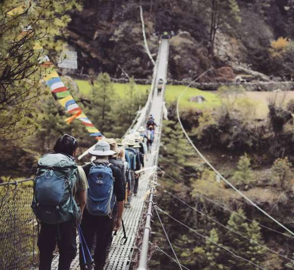 在最後一次攀登南崎巴扎爾(喜馬拉雅山“最大的村莊”)之前,有一座削弱膝蓋的橋(照片來源:@安娜.testa.05、Instagram)