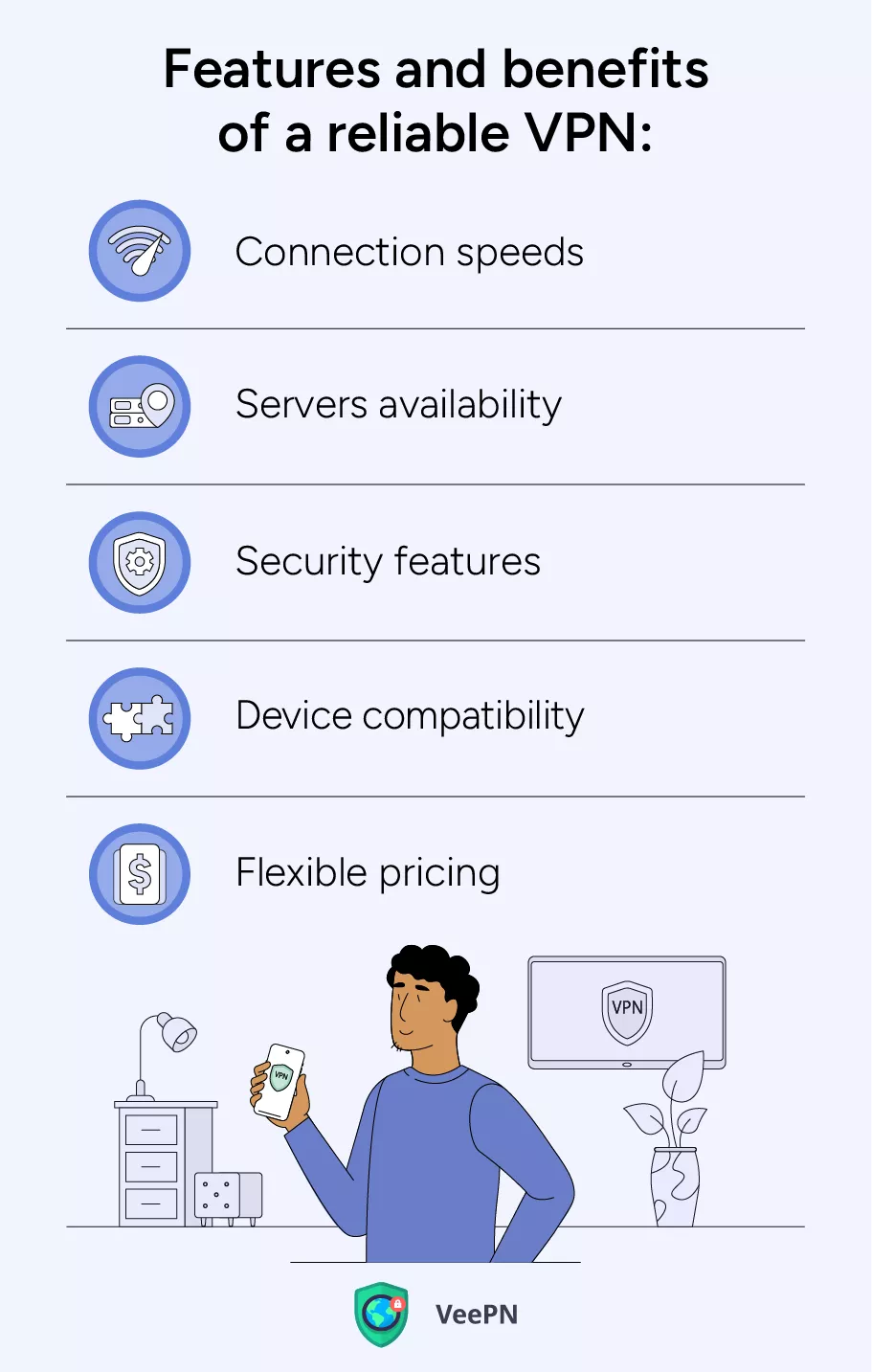 用於流媒體動漫的可靠 VPN 服務應包括以下功能和優點: