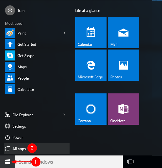 單擊開始按鈕,然後單擊所有應用程序在開始菜單的底部。