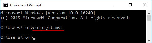 在 Windows 10 中打開命令提示符,鍵入compmgmt.msc並按 Enter 鍵。