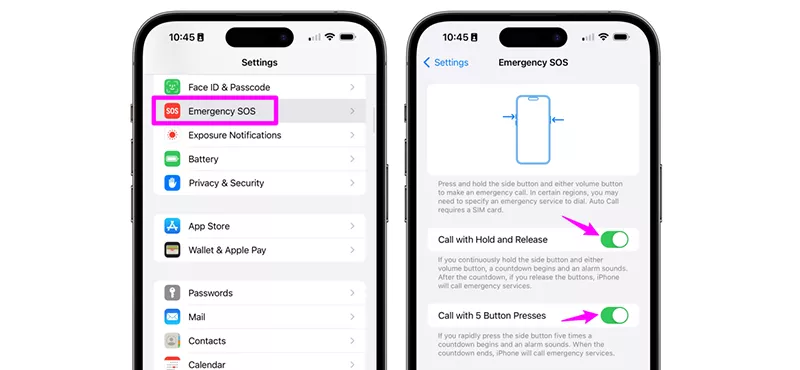 在某些情況下,緊急 SOS 功能可能會干擾強制重啟過程。如果意外觸發此功能,可能會導致手機無法正常重啟。暫時禁用緊急 SOS 可以幫助解決該問題。