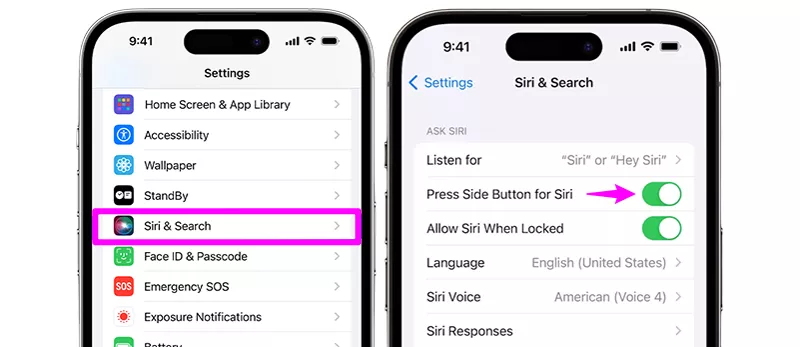 有時,按下側面按鈕會觸發 Siri,從而乾擾強制重啟。通過禁用 Siri,您也許能夠防止這種干擾。以下是禁用 Siri 的方法。