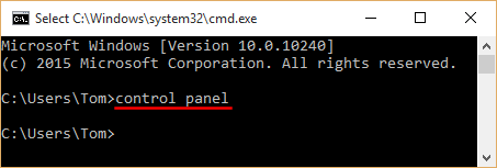 打開命令提示符。類型控制面板並按 Enter 鍵。