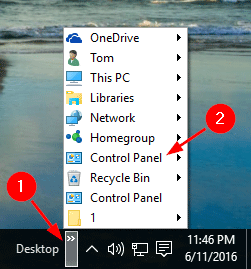 桌面工具欄現已添加到任務欄。單擊它,然後選擇控制面板從列表中。