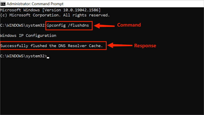 第4步:在 Windows 上刷新 DNS 後,您將收到一條消息“已成功刷新 DNS 解析器緩存”。