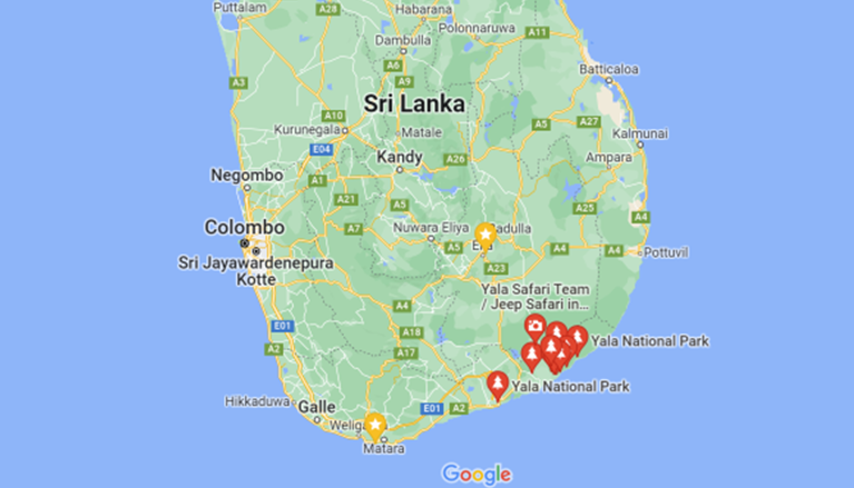 遊覽位於斯里蘭卡東南部的雅拉國家公園,從首都科倫坡(向西)出發,需要 4 小時 15 分鐘的快速車程,風景如畫,從衝浪村阿古曼灣(東部)出發,需要 3 小時 35 分鐘的車程。