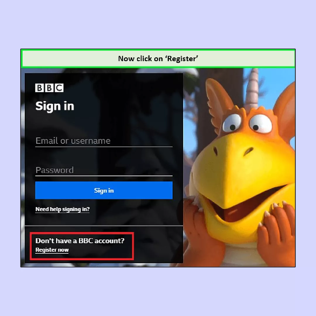 4。登錄或在BBC iPlayer上創建帳戶。