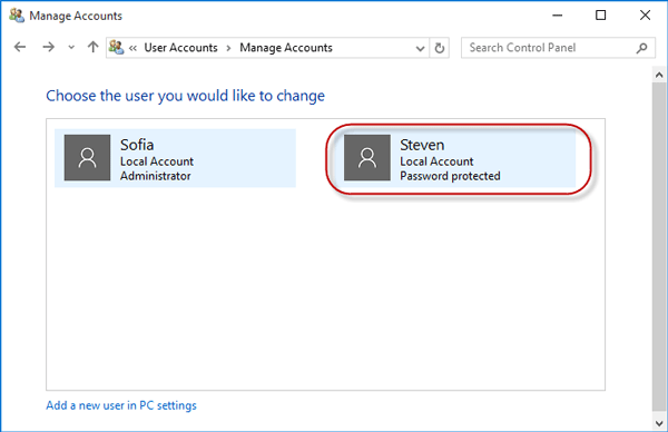 步驟2選擇您不小心從管理員更改為標準的用戶帳戶。