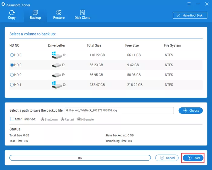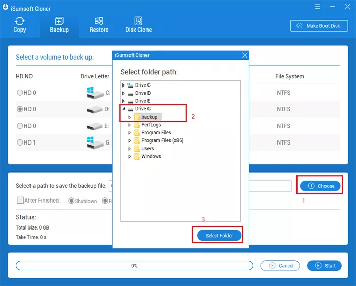 步驟2:打開iSoft Cloner,單擊備份,然後選擇D盤。