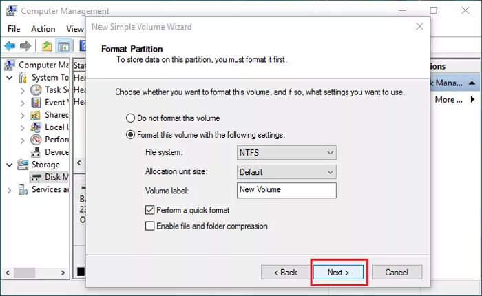 步驟2:指定卷大小然後單擊下一個。我們可以在這裡選擇最大值。