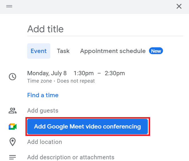 - 添加 Google Meet 鏈接:確保您按照上文所述添加 Google Meet 鏈接。