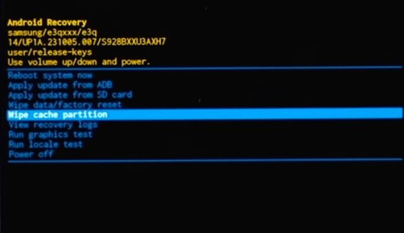 - 使用音量按鈕移動“擦除緩存分區”在恢復菜單中。