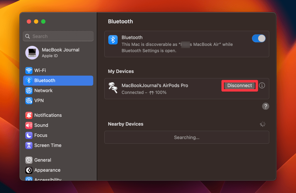 下一個快速修復方法是關閉 Mac 的藍牙並再次打開: