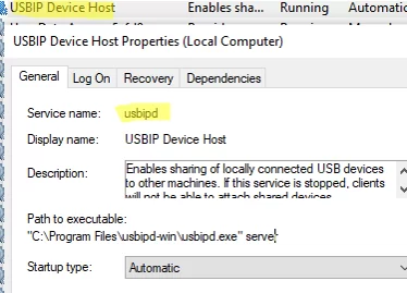該程序將創建一個單獨的usbipd(USBIP 設備主機)Windows 上的服務:"C:Program Filesusbipd-winusbipd.exe"它監聽 TCP 端口 3240