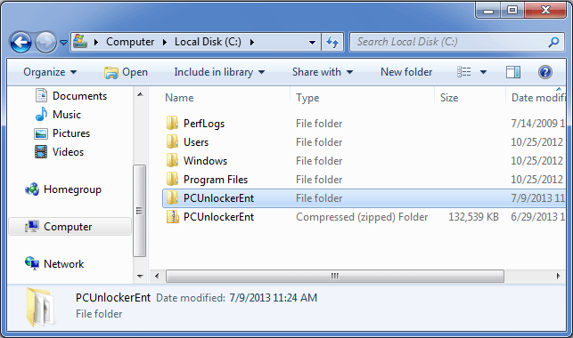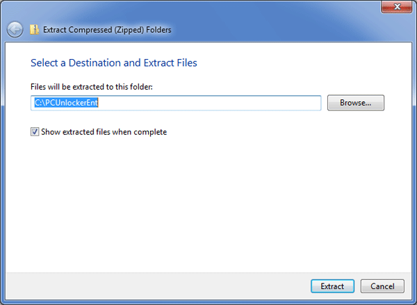 - 如果瀏覽到 PCUnlockerEnt.zip 文件的位置,您會發現有一個新創建的名為 PCUnlockerEnt 的文件夾,其中包含所有提取的文件。