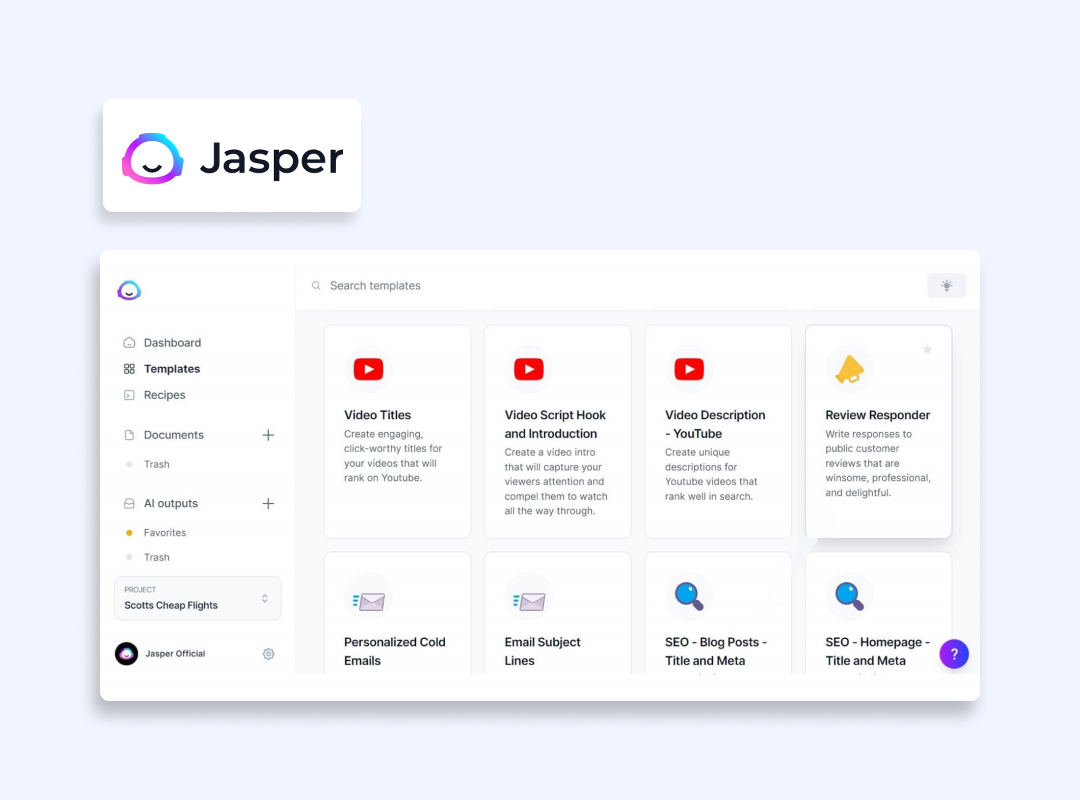 如果您作為自由職業者從事數字營銷工作,或者如果您有一家小型企業需要一些好的人工智能來加速內容創建而不犧牲質量,您會發現這個工具非常有用。 Jasper 還有助於集思廣益,尤其是當內容作者沒有想法時。