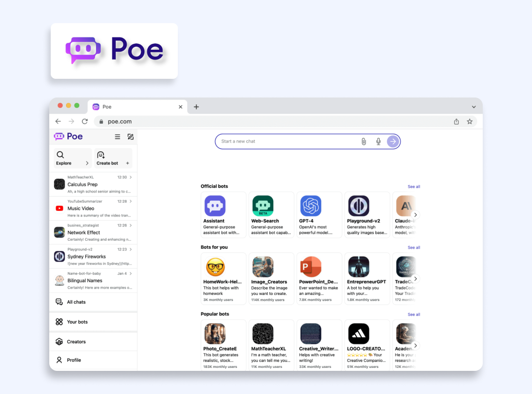 - 跨平台可訪問性。除了移動和網絡訪問之外,Poe 還會自動同步您在所有設備上的聊天和設置。