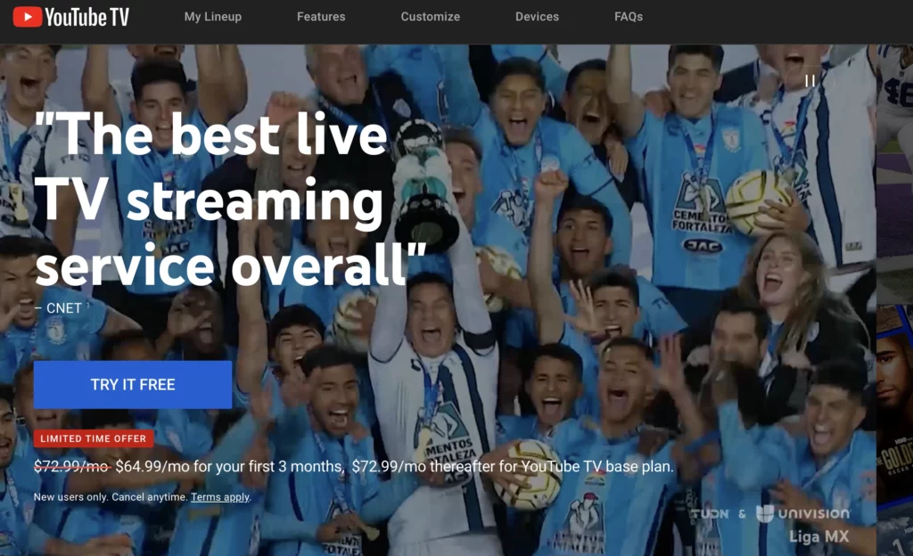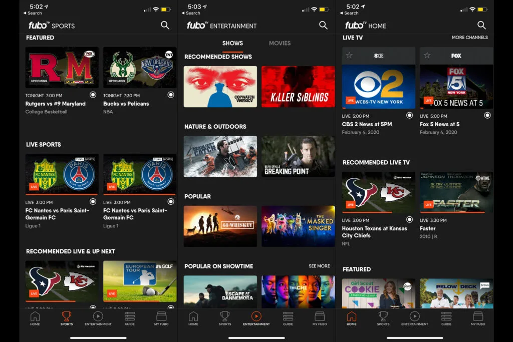 對於那些想要擺脫有線電視的粉絲來說,Fubo TV 是另一個絕佳的選擇。它允許您觀看本地和國際比賽。標準訂閱可解鎖 NBA TV、高爾夫頻道和 NFL Network 等頻道,以及 Fox Deportes、TUDN 和 GOL TV 的全球內容。