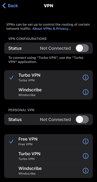 如果您在設備上使用 VPN(虛擬專用網絡),它可能會干擾身份驗證過程並導致 Apple ID 驗證失敗錯誤。嘗試暫時禁用 VPN 並檢查問題是否解決。要在您的設備上禁用 VPN,請按照以下步驟操作:
