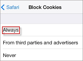如果您希望能夠將“阻止 Cookie”設置為“從不”,請按照以下說明進行操作,您可以在 iPhone、iPad 或 iPod 上的 iOS 7 Safari 中啟用 Cookie。