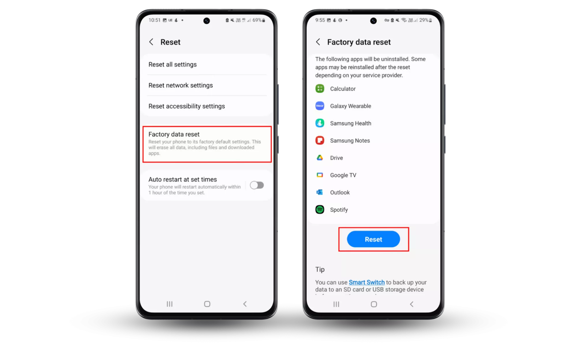 恢復出廠設置會清除手機上的所有數據,包括間諜軟件和其他所有數據。如果您正在考慮此選項,請確保在繼續之前執行數據備份以保存所有重要文件。