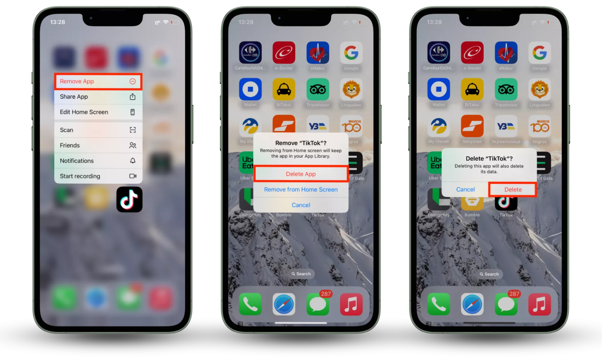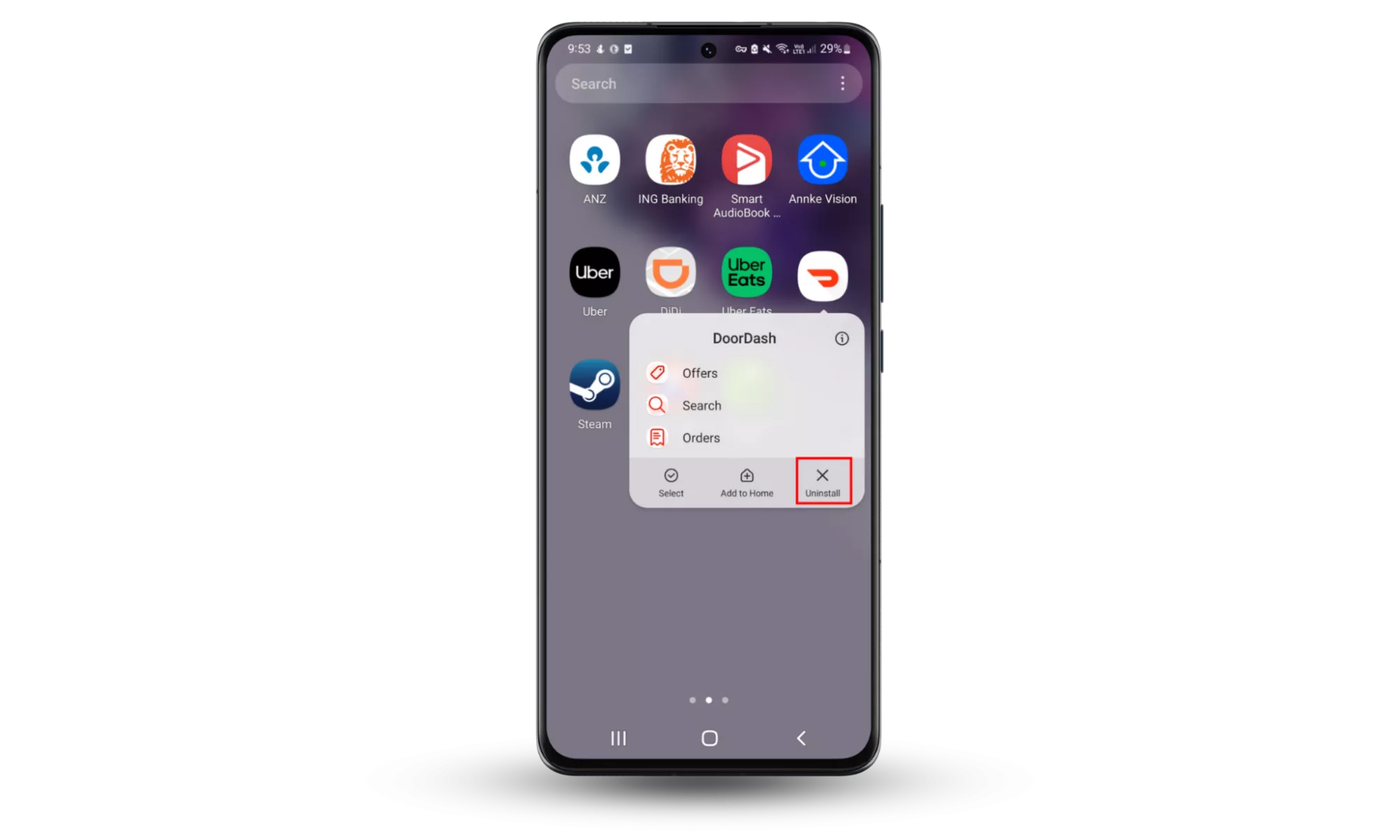 步驟 1-3:掃描主屏幕,按住該應用程序,然後選擇卸載。