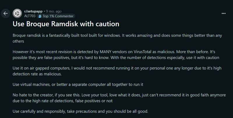 我們對 Broque Ramdisk Pro 的最新評測和個人測試也顯示了同樣的趨勢。這意味著該工具不再能夠很好地處理錯誤。它無法正常恢復,而是崩潰、凍結或顯示令人困惑的錯誤消息,並且沒有回退措施。