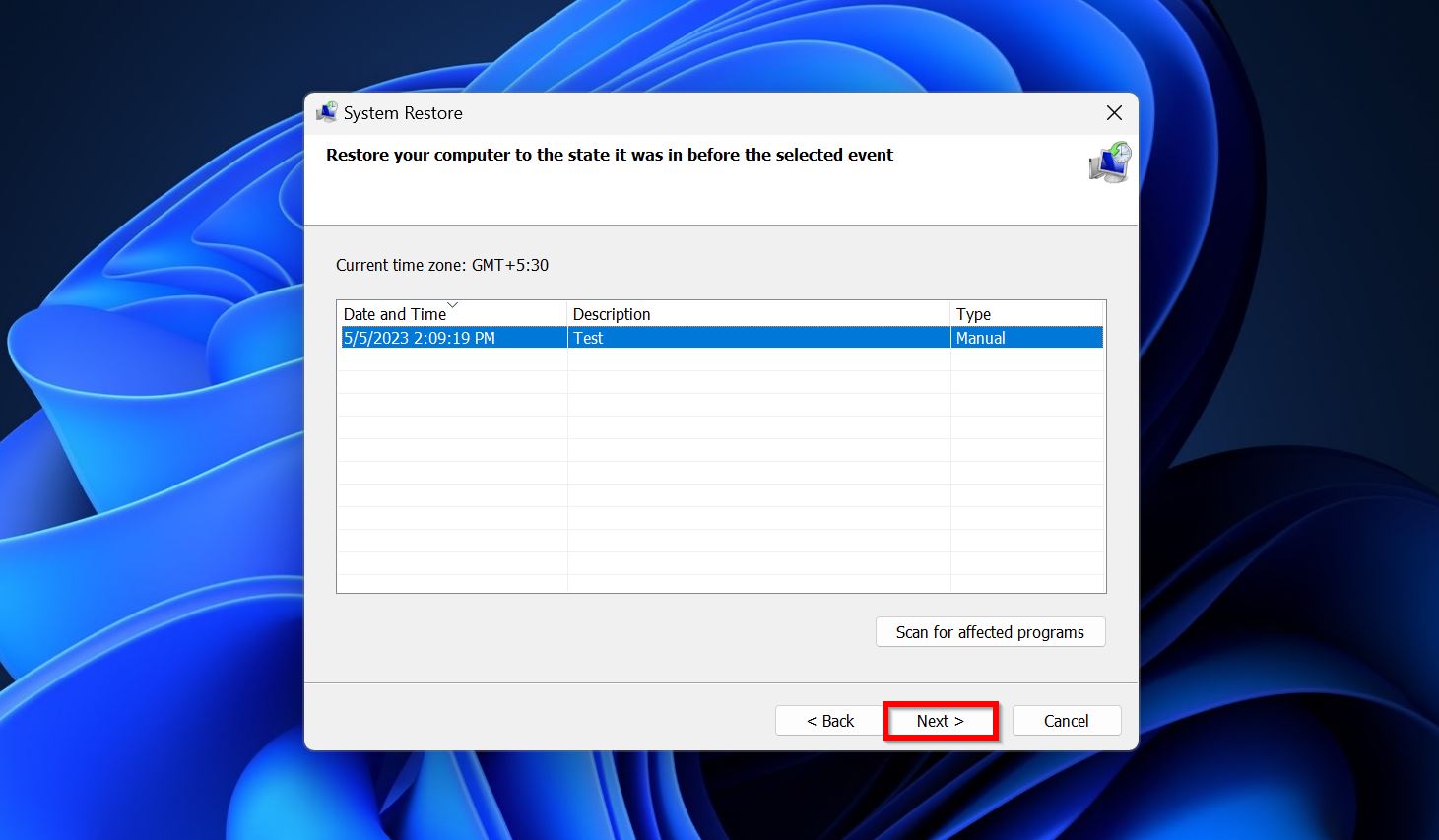 - 點擊下一個在系統還原嚮導歡迎屏幕中。