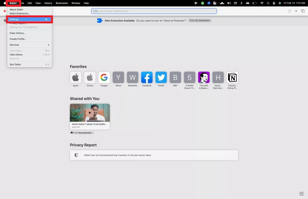 步驟 1-2:打開 Safari > 單擊頂部菜單欄中的 Safari > 選擇“設置”>“轉到擴展”。