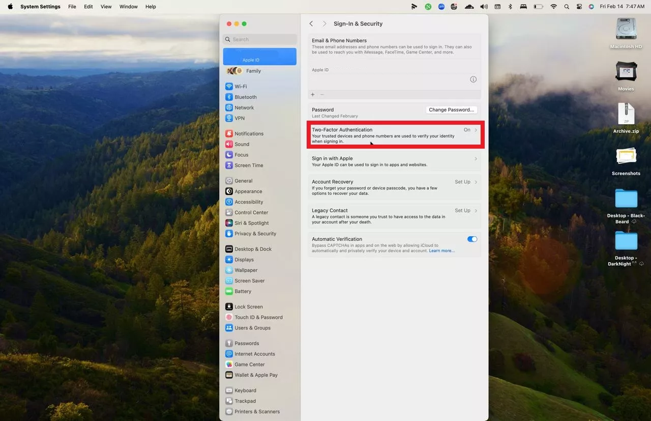 如何在 macOS 上啟用雙因素身份驗證: