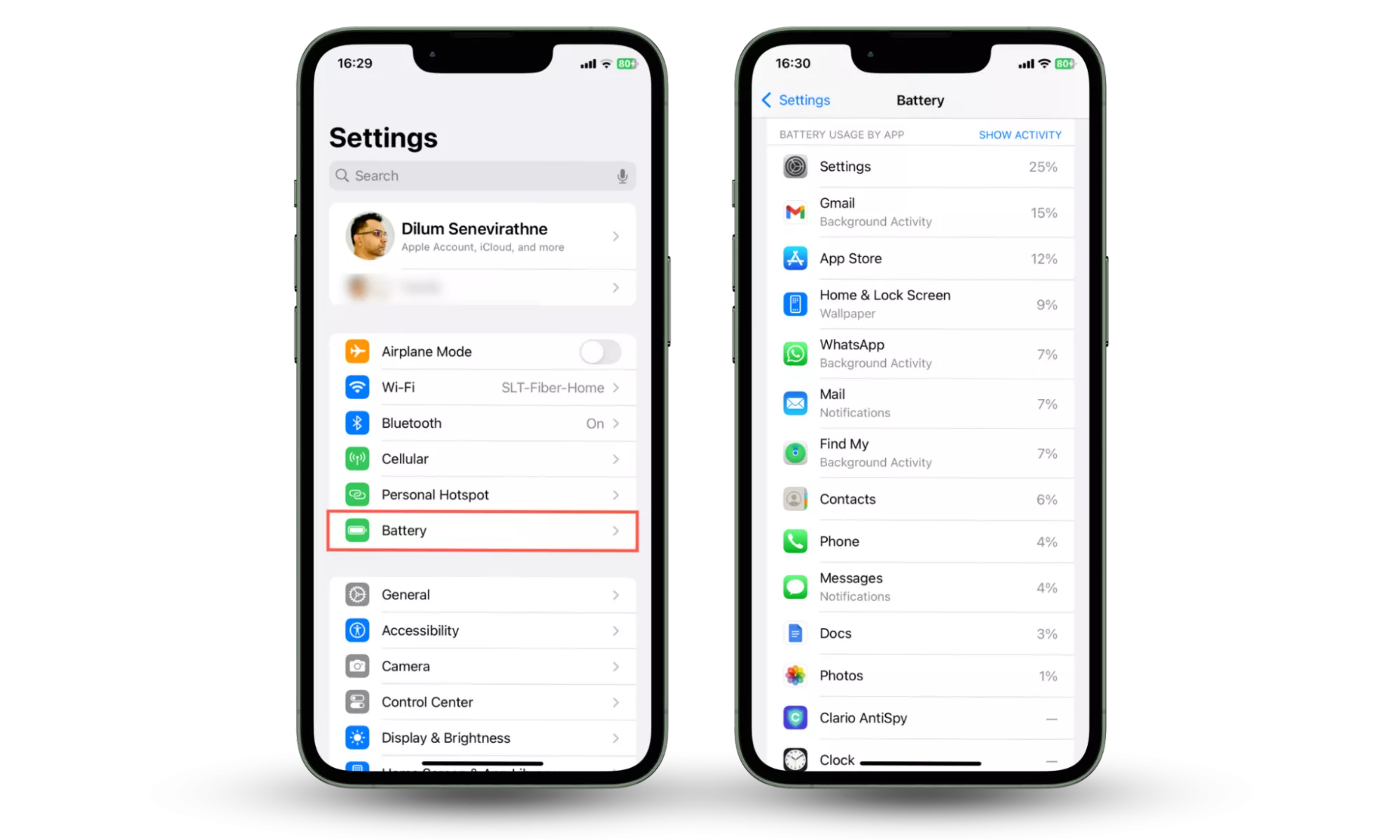 要檢查電池性能峰值以及哪些應用程序正在耗盡您的 iPhone,請按照以下步驟操作: