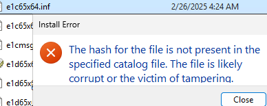 出現此問題的原因是驅動程序文件經過數字簽名,修改它會更改其哈希值,使其不再與原始數字簽名匹配。在這種情況下,您可以: