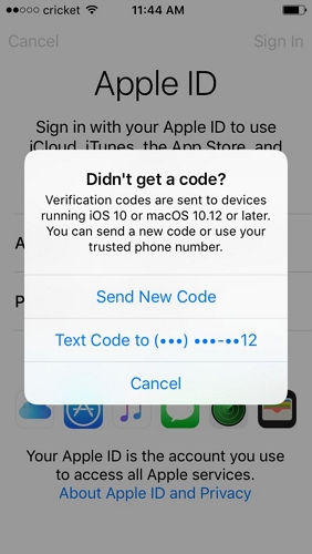 - 選擇短信代碼至(電話號碼)將代碼發送到您信任的電話號碼。