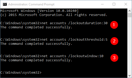 以下是如何從提升的命令提示符更改帳戶鎖定策略。