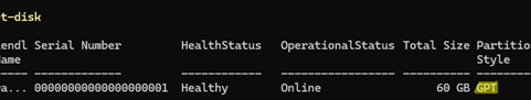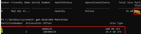 使用PowerShell檢查磁盤分區樣式。它應該是一個不超過 3 個主分區的 MBR: