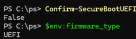 如果安全啟動模式被禁用,請使用以下命令檢查是否使用 UEFI 啟動模式: