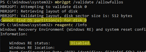 另一個可能的錯誤,'Cannot find OS partition(s) for disk 0' 表示 BCD 引導加載程序配置缺少用於引導至 Windows 恢復環境的條目。看看這個: