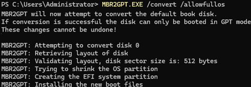 從 Windows 10 版本 1703 開始,微軟引入了內置的MBR2GPT工具,它可以將磁盤的分區表從 MBR 轉換為 GPT,而不會丟失數據。